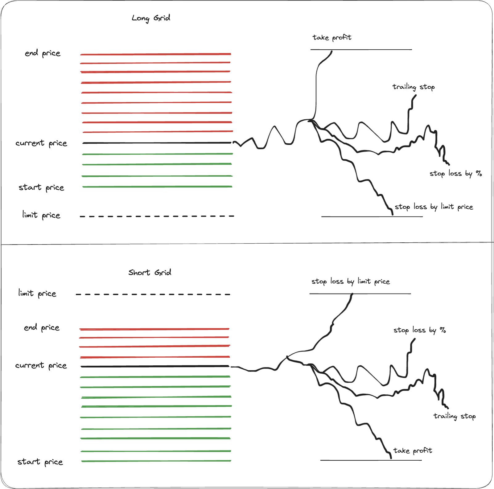| limit_price | If price falls below this level for Buy grids (or rises above for Sell grids), the bot stops trading and terminates positions (or moves them to PositionHold based on keep_position) |