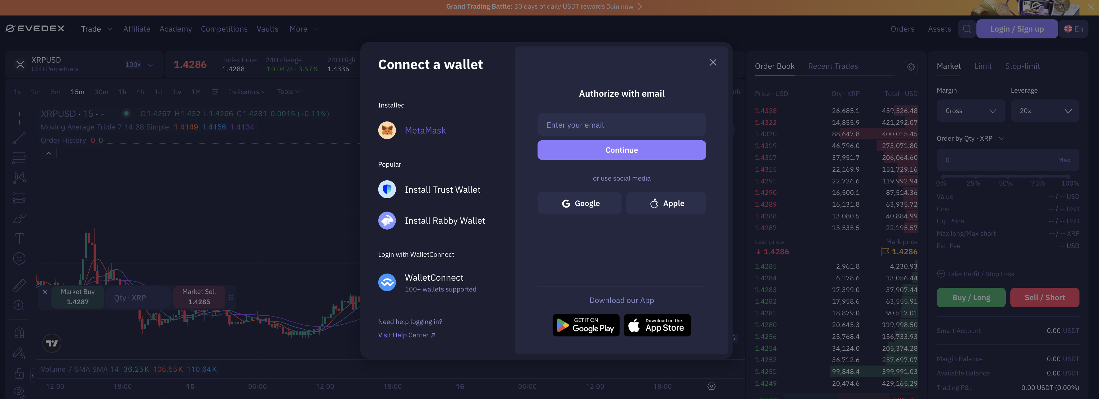 >>> connect evedex_perpetual