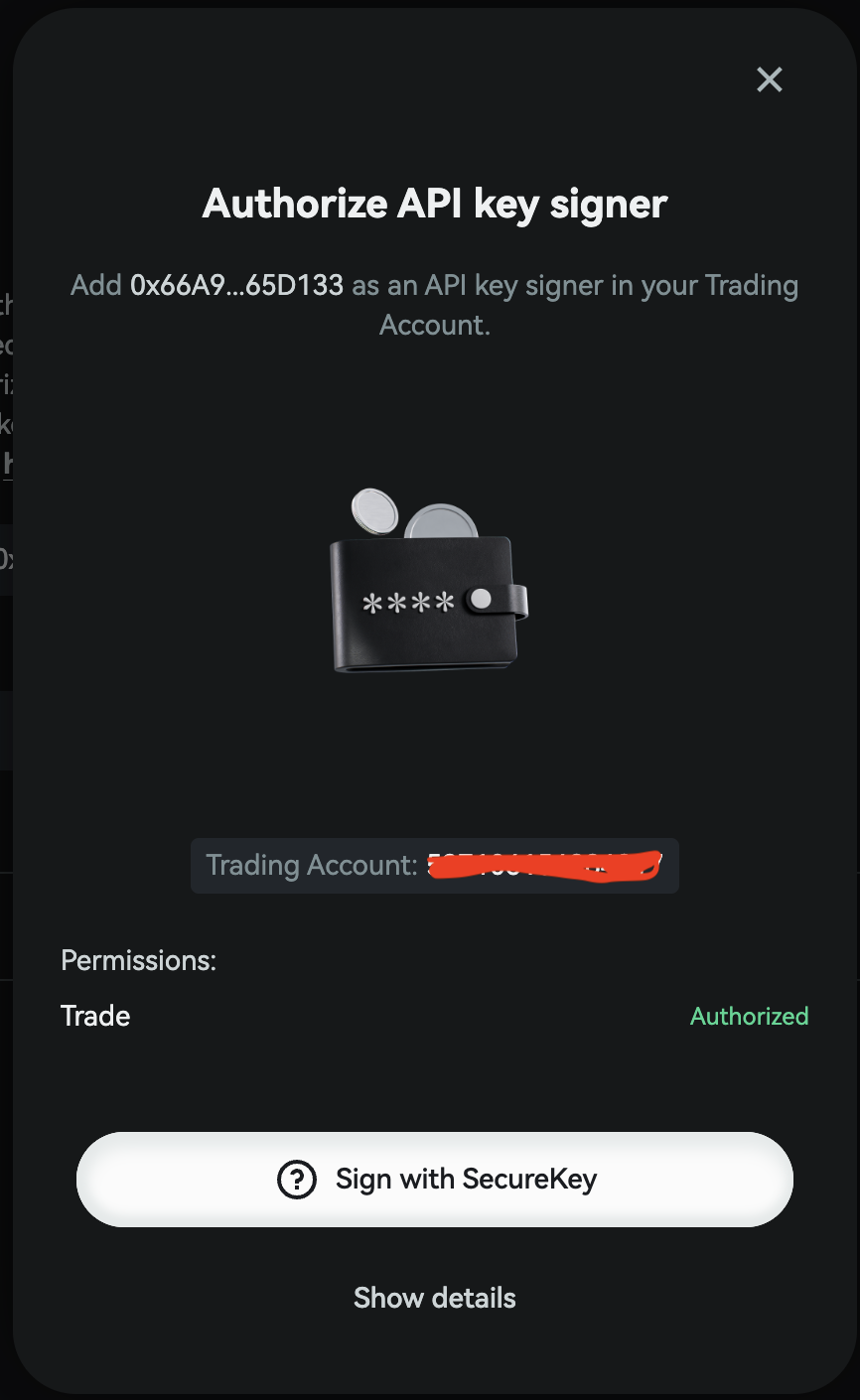 grvt_perpetual - Authentication: API key, Secret Private Key, Trading ID