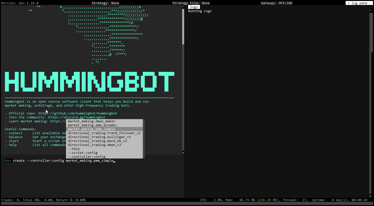 This will create the conf_market_making.pmm_simple_1.yml controller config file under the /conf/controllers folder
